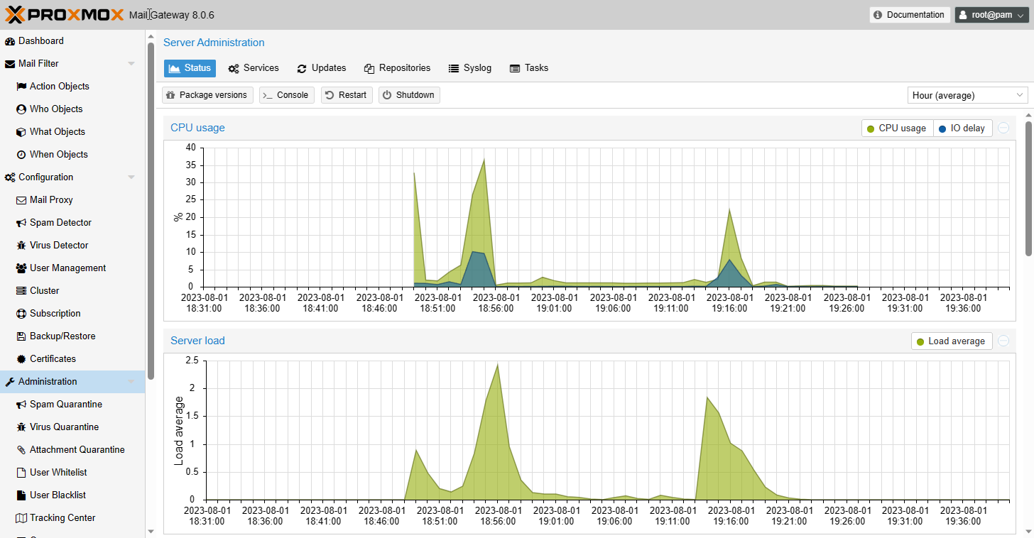 Теперь можно обновить веб-интерфейс и перейти к работе в новой версии Proxmox Mail Gateway: