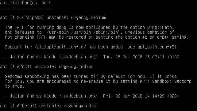 В процессе обновления вам могут быть показаны информационные сообщения о важных изменениях в системе, как показала практика, не все знают как их закрыть, для этого просто нажмите q.