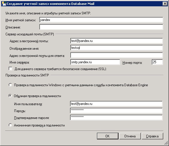 Настройки в следующем меню можно оставить по умолчанию. Настройка завершится созданием почтового профиля, параметры которого вы всегда сможете изменить в компоненте Database Mail. Проверить созданный профиль можно отправив тестовое сообщение через Database Mail.