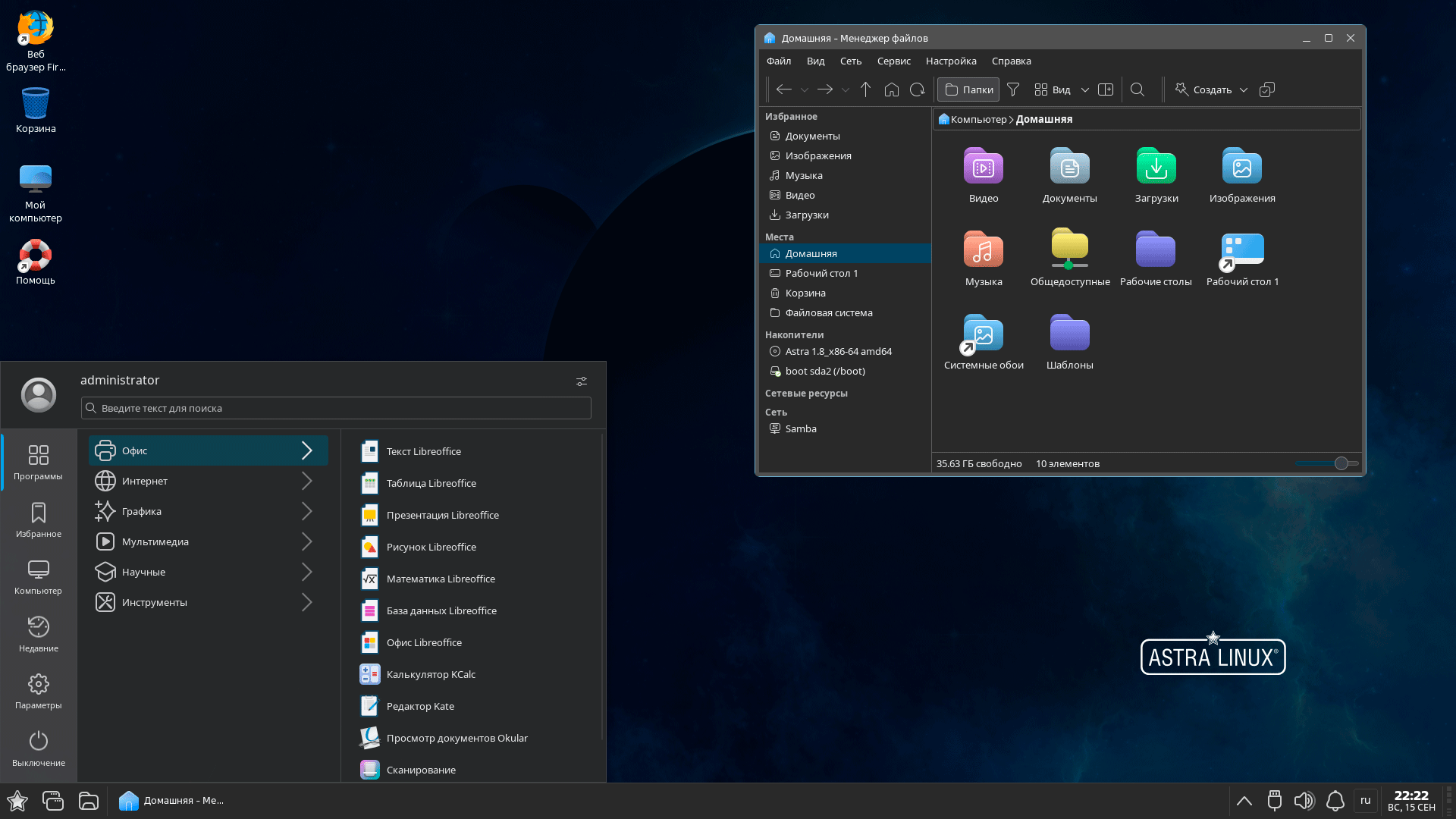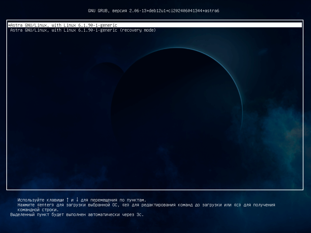 Начальный загрузчик тоже стилизован и основной упор в Astra Linux 1.8 делается на космическую тему.