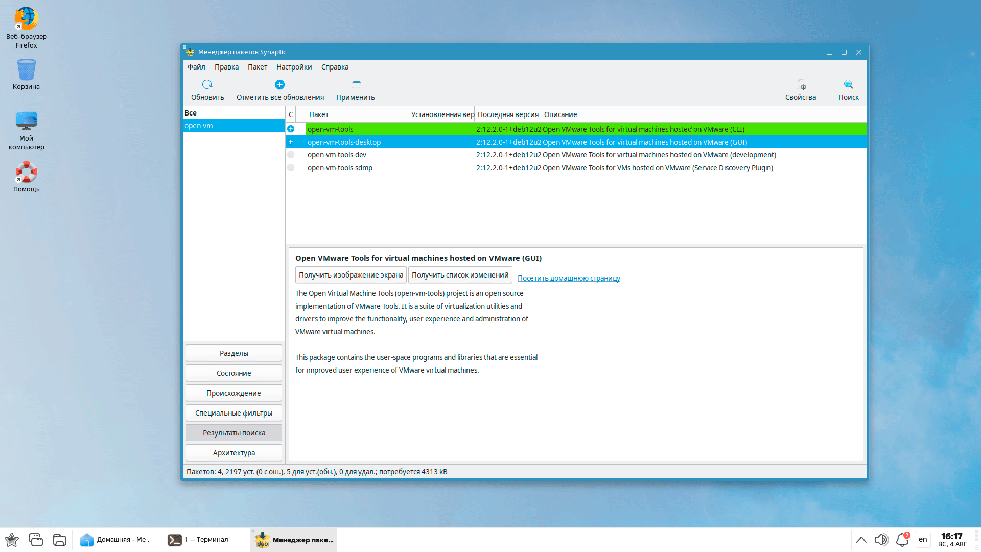 Никаких пользовательских инструментов для управления ПО нет, но это и понятно, система не предназначена к использованию частными лицами, тем не менее скачанный DEB-пакет можно установить двойным щелчком по нему, что мы показали на скриншоте выше, а их графических инструментов администратору доступен классический Synaptic: