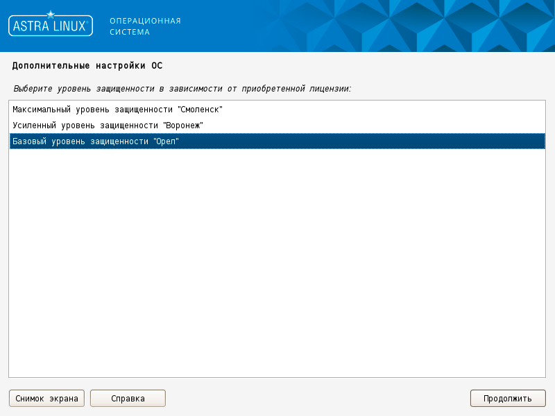 После чего установка продолжится своим чередом. Но когда же будет выбор редакции? Ведь мы же уже фактически все установили. Ну вот как раз сейчас и будет. Дистрибутив содержит все три редакции, но использование Воронежа и Смоленска без лицензии не имеет никакого смысла (точнее без сопутствующих сертификатов ФСТЭК, ФСБ, МО и т.д.), разве что в ознакомительных и лабораторных целях, поэтому наш выбор - Орел.