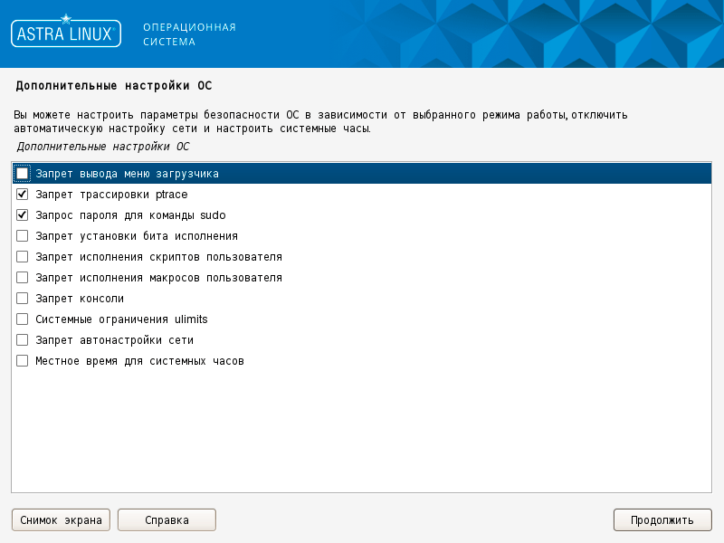 Но вернемся к установке. Перед нами классический установщик Debian, оформленный в синем стиле Astra. Никаких особенностей там нет, если вы хоть раз ставили Debian, то удивить вас здесь нечем.