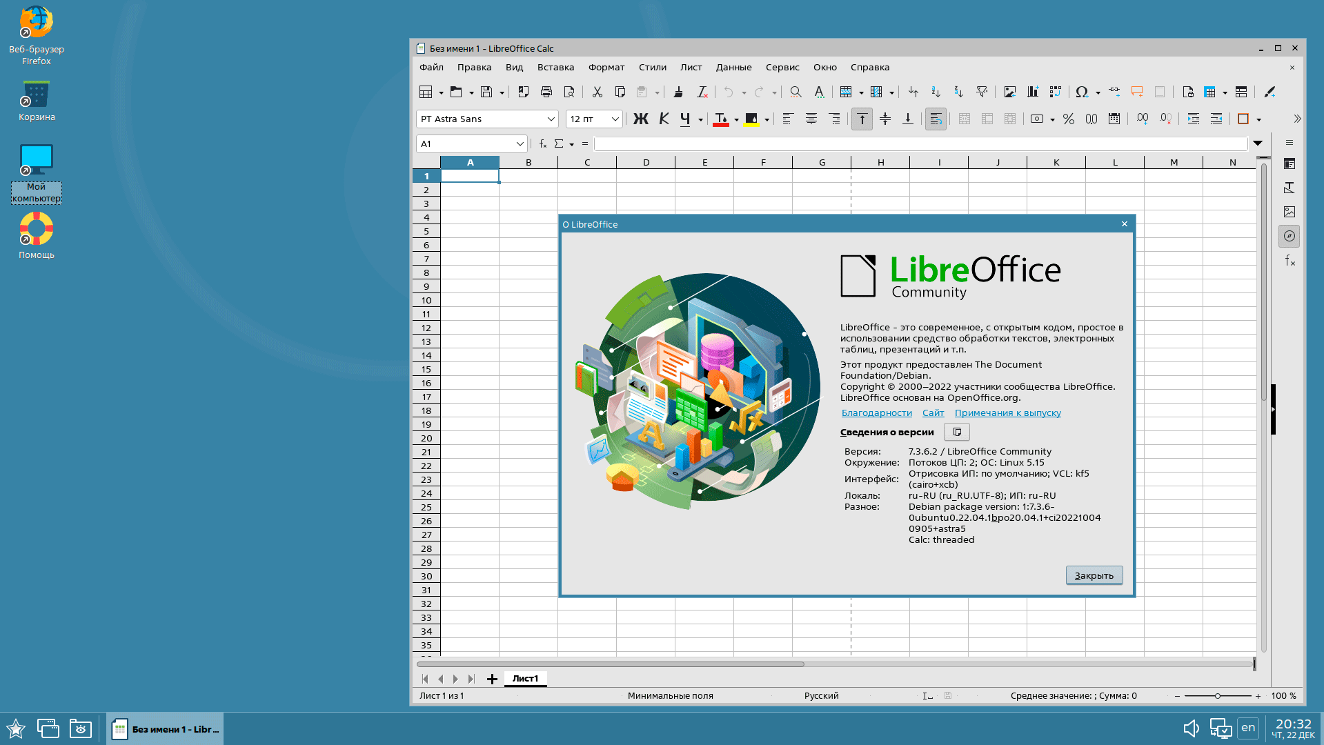 Что касается набора ПО, то он стандартный, система основана на пакетной базе Debian 10, но есть тонкости, часть пакетов позаимствована из свежей Ubuntu 22.04, в этом нетрудно убедиться, посмотрев свойства офисного пакета.