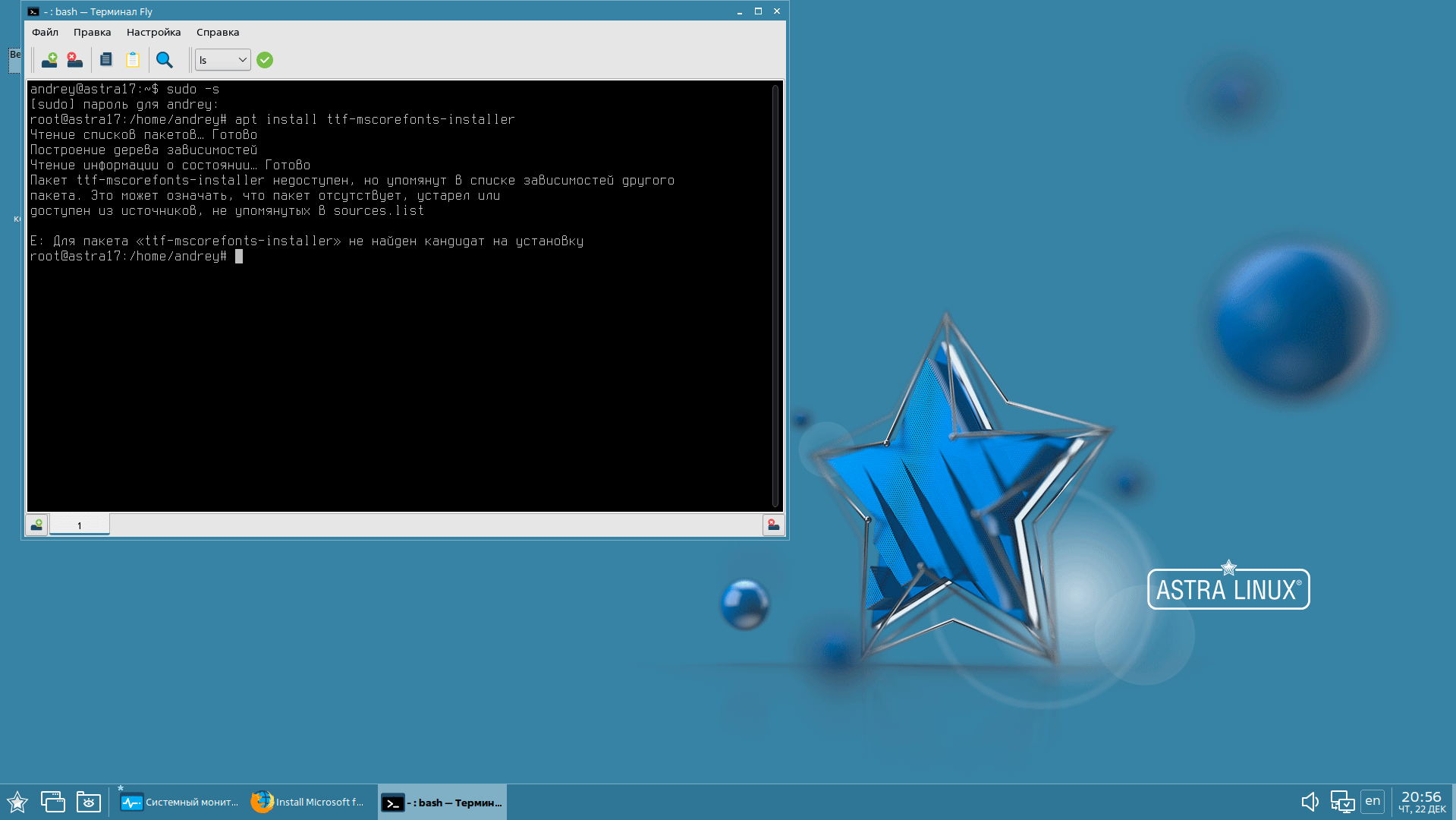 Кроме того, приходится отметить определенную скупость репозиториев, так для 1С:Предприятие требуется набор шрифтов MS, пробуем поставить и что?