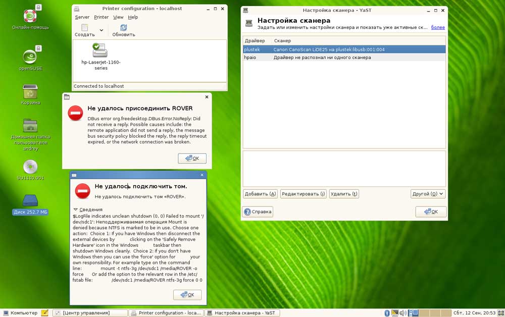 Порадовало, что система без напоминаний установила выбранное нами при установке разрешение экрана, да и вообще с основным оборудованием проблем не возникло: звук и сеть поднялись "из коробки". Работа принтера и сканера также не вызвала нареканий. Для установки принтера пришлось воспользоваться кнопкой "Создать" в Центр управления - Печать. Далее система сама определила тип принтера и установила на него драйвер. Сканер определился самостоятельно, также никаких затруднений не вызвало использование Bluetooth адаптера.