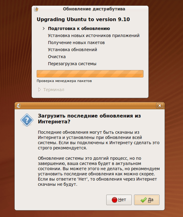 После чего нам было предложено получить последние версии пакетов через интернет. Следует учитывать, что CD содержит обновление только базовой системы, все языковые пакеты, как и при чистой установке, докачиваются через интернет. Поэтому, если вы не хотите после обновления докачивать языковые пакеты вручную, мы бы советовали согласится с этим предложением.