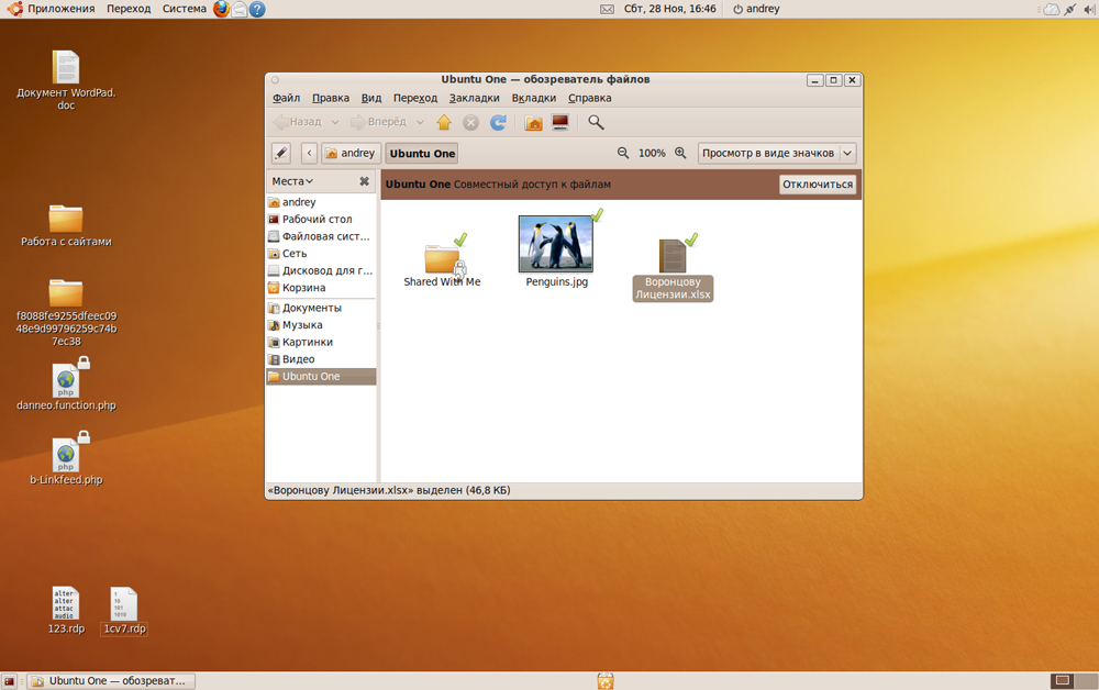 Кроме того можно открыть общий доступ к файлам для других пользователей сервиса, для этого нужно будет явно указать аккаунты пользователей которым вы хотите дать доступ. Удобно? Да. По умолчанию предоставляется 2 Гб дискового пространства, что на наш взгляд более чем достаточно, в противном случае можно приобрести дополнительно 50 Гб всего за 10 USD в месяц. Единственное, чего на наш взгляд не хватает в этом сервисе - это синхронизации закладок Firefox, но не будем забывать: Ubuntu One пока находится в статусе Beta, так что - поживем увидим.