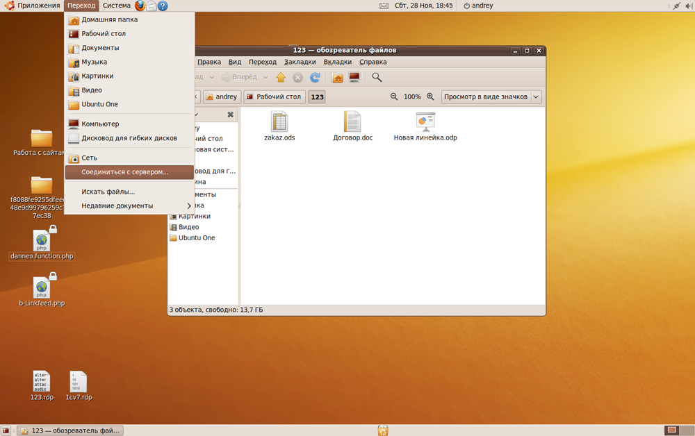 Далее перед нами предстает обновленный рабочий стол, в первую очередь обращают внимание новые значки. Выполненные в строгом стиле и не имеющие ничего общего с аляповатостью значков предыдущих версий Gnome они производят исключительно приятное впечатление. На высоте и новая тема оформления: темно-коричневый цвет заголовков окон и несколько более светлый тон выделения смотрятся свежо и достойно.