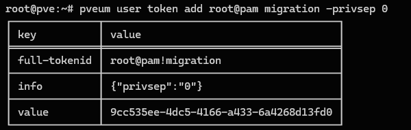 1pveum user token add root@pam migration -privsep 0