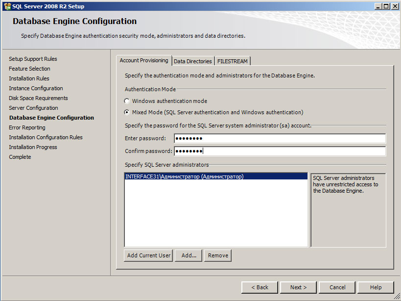 Мы не будем рассматривать процесс установки и настройки полностью, он был детально нами описан в предыдущей статье, а остановимся на характерных особенностях связанных с использованием Windows Server и SQL Express.