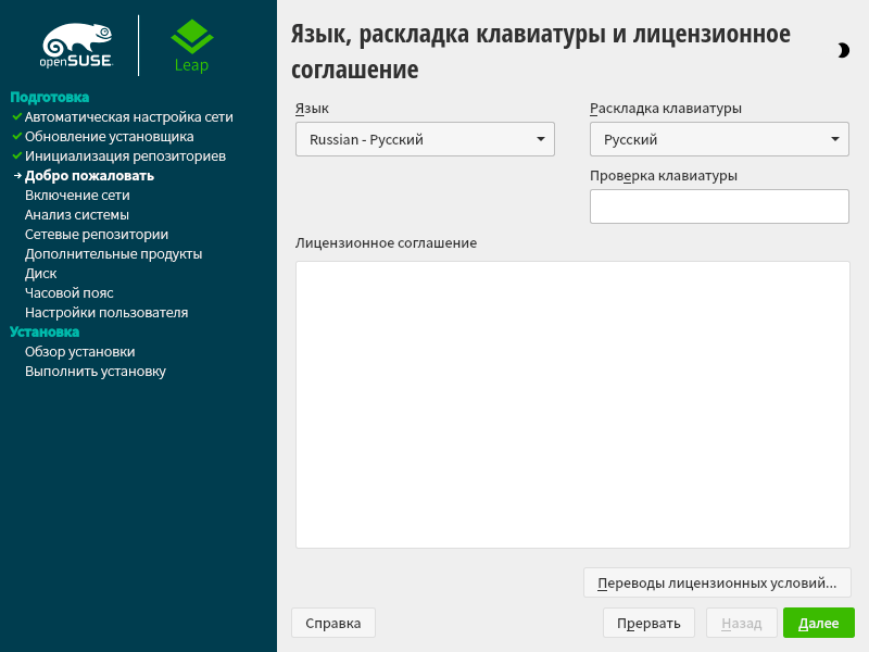 Установка плавающей версии openSUSE ничем не отличается от стабильной, тот же установщик, те же цвета, только вот набор репозиториев несколько иной и нет репозиториев от SLE, но это и понятно, с точки зрения переднего края прогресса там все дико устарело, а мы наоборот стремимся быть кругом первыми.