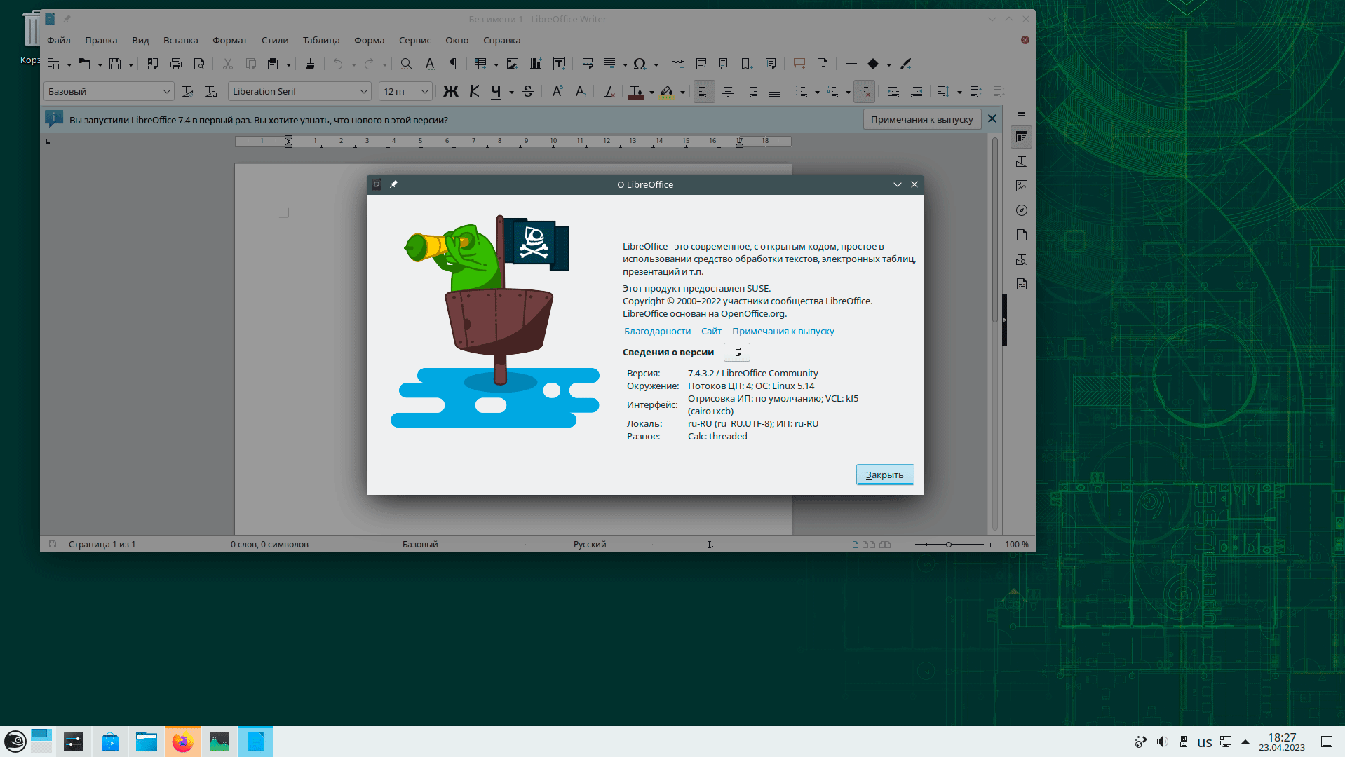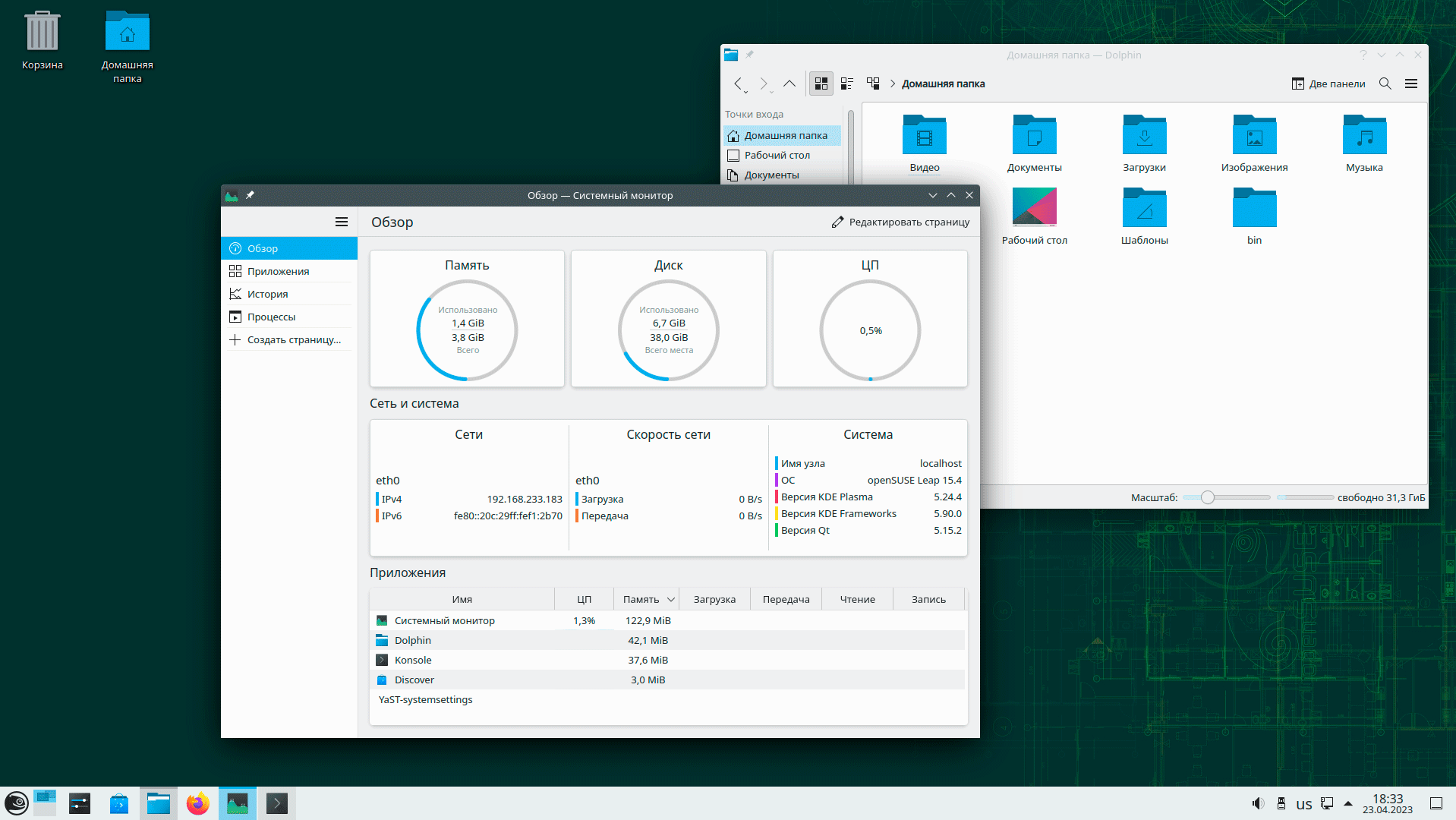 Под капотом тоже не самые последние версии, но достаточно актуальные: ядро 5.14 и KDE Plasma 5.24 LTS. Для рабочей системы, а Leap - это прежде всего именно рабочая система, бесплатный аналог SLED, все пропорции между новизной и стабильностью выдержаны удачно. Программы достаточно стабильны, но не настолько стары, чтобы пользователь начал искать что-то свежее на стороне.