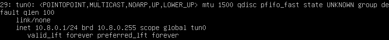 Убедимся в наличии сетевого интерфейса туннеля командой
