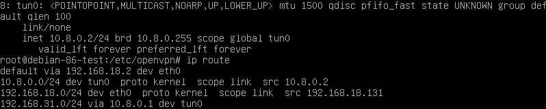 который будет направлять все пакеты к сети 192.168.31.0 узлу с установленным OpenVPN, дальнейшая маршрутизация на другой конец туннеля будет выполняться также силами OpenVPN.
