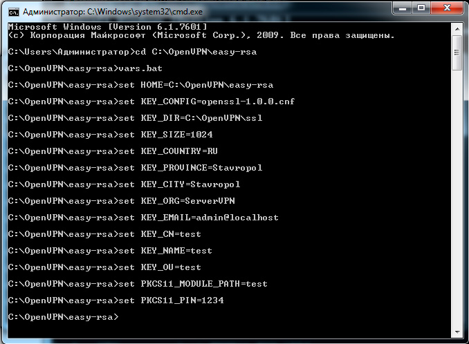 Переходим по пути C:\OpenVPN\easy-rsa, набрав для перехода в командной строке команду