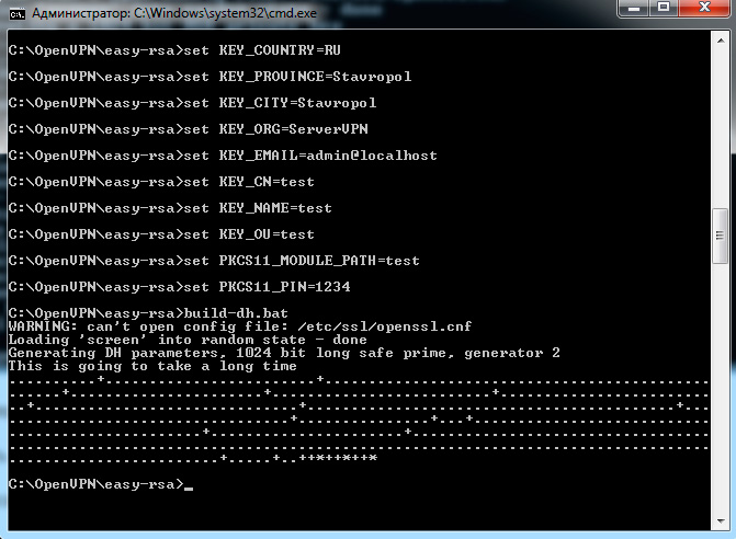 Теперь запускаем build-ca.bat. Так как вся информация о сервере у нас уже заполнена, все оставляем без изменений: