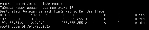 Решение о передаче пакетов в этом случае также принимается на основании таблицы маршрутизации. Посмотрим, что содержит данная таблица на самом обычном роутере, например, описанном нами в статье: Ubuntu Server. Настраиваем роутер NAT + DHCP + Squid3. В Linux-системах получить таблицу маршрутов можно командой: