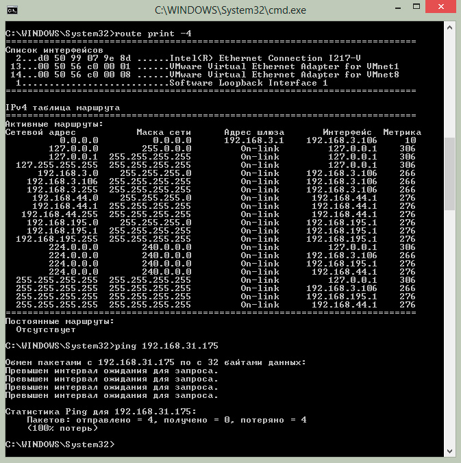 Теперь попробуем выполнить пинг узла 192.168.31.175 с узла 192.168.3.106, т.е. в обратном направлении. У нас ничего не вышло. Почему?