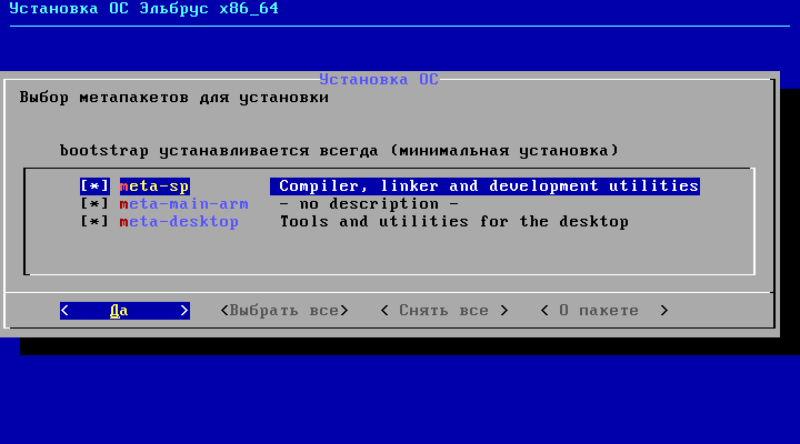 Кстати, мы забыли про второй диск. На нем располагается, в терминологии Эльбрус, общее программное обеспечение (ОПО), для его установки требуется смонтировать диск в консоли и произвести установку пакетов. Никакого выбора не предлагается, можно поставить либо все, либо нужное (если вы знаете какой пакет вам нужен и если он там есть). Чтобы установить все следует ввести команды: