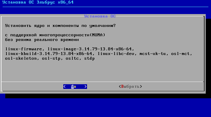 Выбираем установку по умолчанию, настраиваем часовой пояс и попадаем к набору опций установки:
