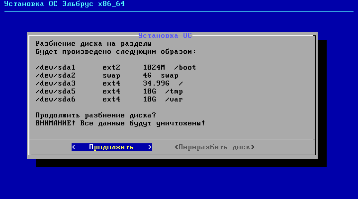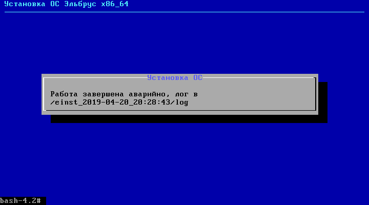 При этом работа инсталлятора завершается, и чтобы почитать лог придется лезть в консоль. Очень скоро выяснилось, что Эльбрус не видит виртуальные SCSI-диски и таким образом реагирует на отсутствие доступных дисков. Проблема была решена сменой типа диска на SATA. Но здесь нас поджидал следующий сюрприз: