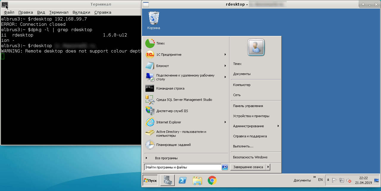В принципе этого уже достаточно, чтобы поставить крест на всей этой затее. Зачем нужна система, если вы не можете в нее ничего установить и даже не можете нормально обновить. Скажем пакет rdesktop оказался версии 1.6.0 (от 2015 года), а это значит, что максимум с чем вы сможете соединиться - это Server 2008R2 (либо снижать параметры безопасности у современных систем). Хотя в том же Debian 8 в репозиториях доступна свежая версия пакета.