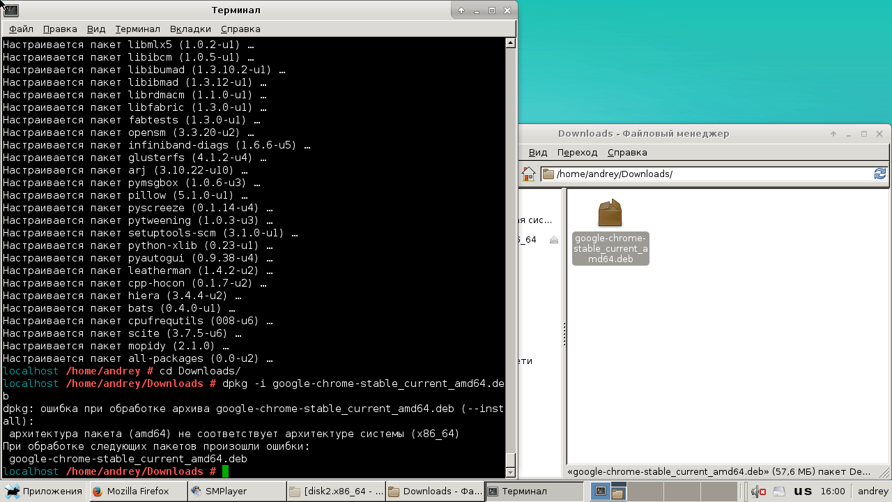 Ну ладно, это все-таки Linux, давайте попробуем что нибудь установить, зависимости, конечно, придется докачать руками... Но не тут-то было, оказывается, что архитектура x86_64 у Эльбруса совсем не тоже самое, что общепринятая amd64.