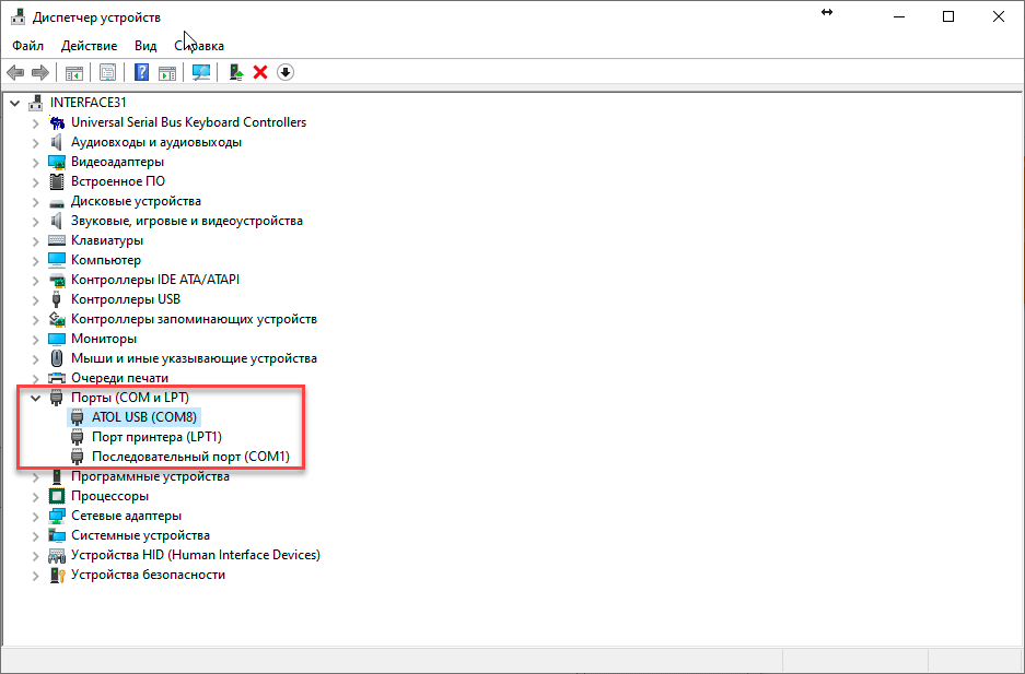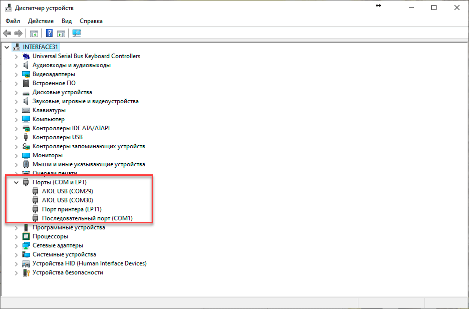 В диспетчере задач ККТ с данной прошивкой снова определяются двумя виртуальными COM-портами:
