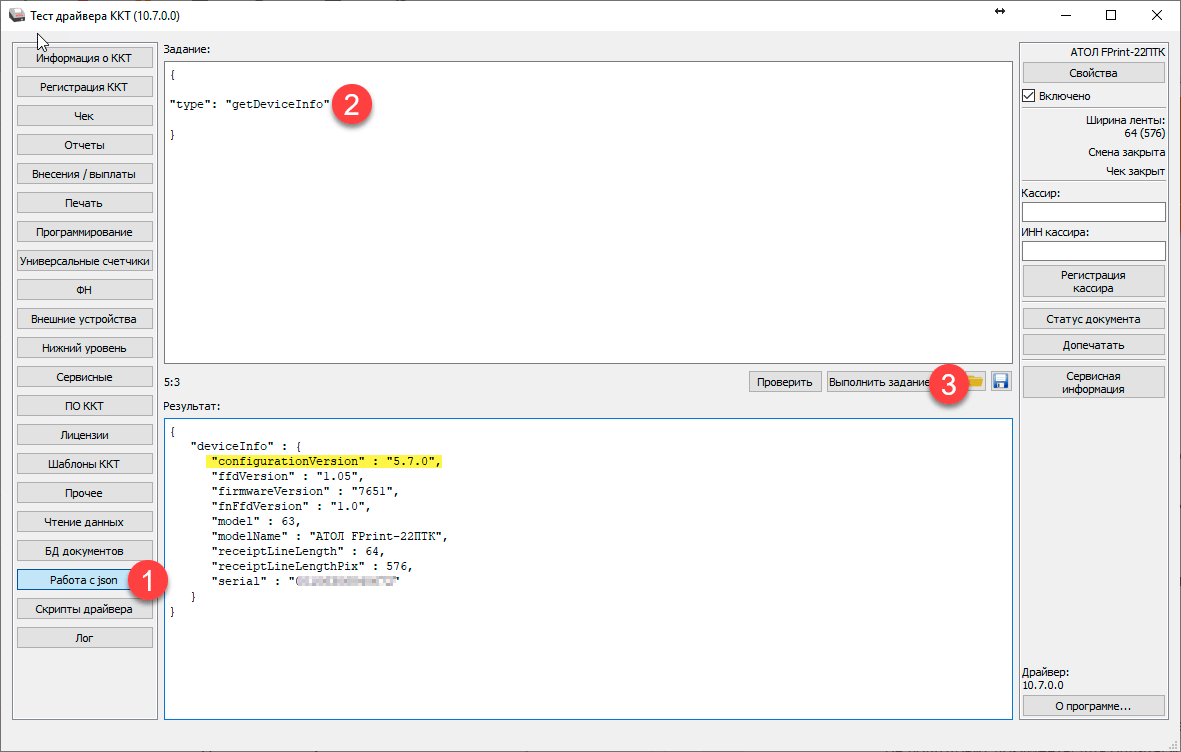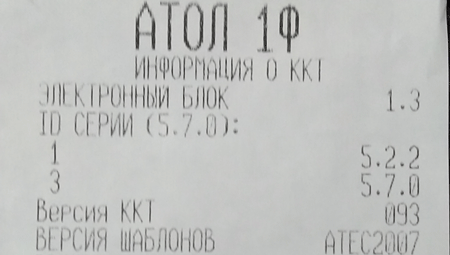 Результатом будет набор информации о ККТ включающий в себя номер прошивки: