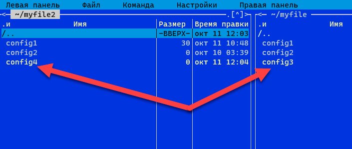 В некоторых случаях в текущей директории могут появиться файлы, генерируемые сторонними программами, скажем, файлы логов или закачек. Но панели Midnight Commander не отображают текущих изменений, чтобы принудительно обновить содержимое нажмите Ctrl + r, в других ситуациях на экране может нарушиться отображение или остаться артефакты от других программ, которые вы запускали из среды менеджера, для перерисовки экрана следует использовать сочетание Ctrl + l.