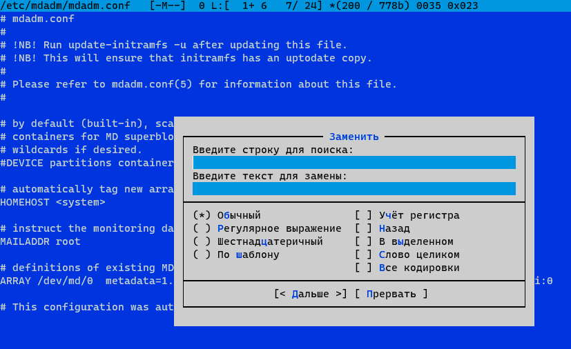 Отдельного разговора заслуживает встроенный редактор - mcedit, его можно использовать как в составе оболочки Midnight Commander, так и отдельно, для редактирования файла в данном редакторе достаточно выполнить команду: