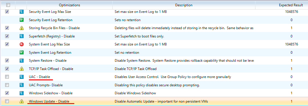 По сути перед нами специальный "твикер", который производит тонкую настройку ОС для работы в роли виртуального рабочего стола (VDI) в виртуальной среде. Следует понимать, что такая оптимизация не увеличивает быстродействия, а направлена в первую очередь на экономию вычислительных ресурсов гипервизора, что не отменяет субъективного повышения комфортности работы - система становится более отзывчивой, производит меньше фоновых операций, которые могли приводить к снижению скорости работы.