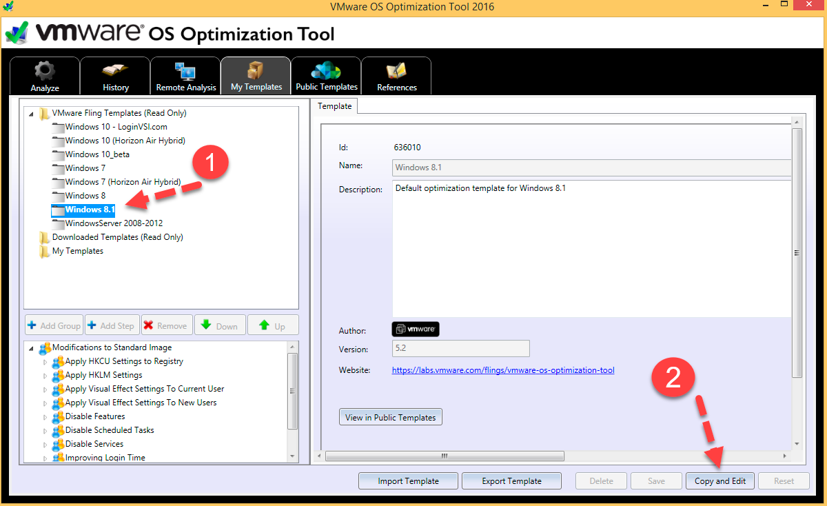 Теперь применим стандартный шаблон для Windows 8.1 от VMWare: