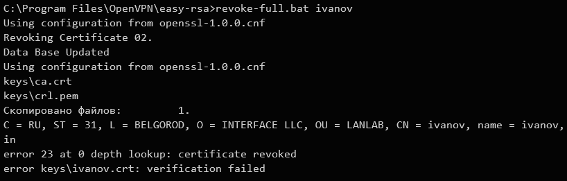 1./easyrsa revoke ivanov