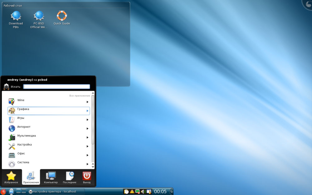 Отдельного внимания заслуживает клиент удаленного рабочего стола поддерживающий протоколы VNC и RDP.Нас более заинтересовал последний, так как позволяет использовать рабочую станцию под управлением PC-BSD в качестве терминального клиента в корпоративной среде.