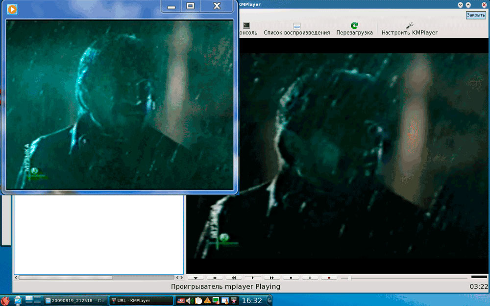 Мы специально наложили на рисунок выше картинку одного и того же клипа (не самого лучшего качества) в Windows 7 (WMP 12) и РС-BSD. Несмотря на то, что KMPlayer не единственный видеопроигрыватель в системе, ситуация нисколько не меняется к лучшему. Приятным исключением стал VLC, обеспечивший высокое качество изображения даже для сжатых форматов (Почему бы не поставить его по умолчанию? Вопрос к разработчикам дистрибутива.).