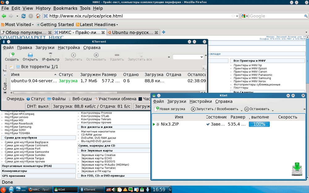 Удобно использовать менеджер закачек KGet - достаточно перетащить ссылку на значок винчестера с зеленой стрелочкой. Для работы в файлообменных сетях предназначен KTorrent, который отлично справляется со своими основными функциями.