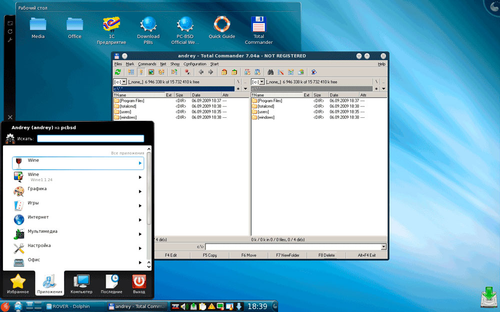 В наборе ПО мы также обнаружили Wine и не упустили случая опробовать его в действии. 1С Предприятие хотя и установилось, но запускаться отказалось, в тоже время Total Commander заработал без проблем. Попытка установить более серьезный софт, такой как MS Office 2003 или Adobe Photoshop потерпела фиаско еще на стадии установки.