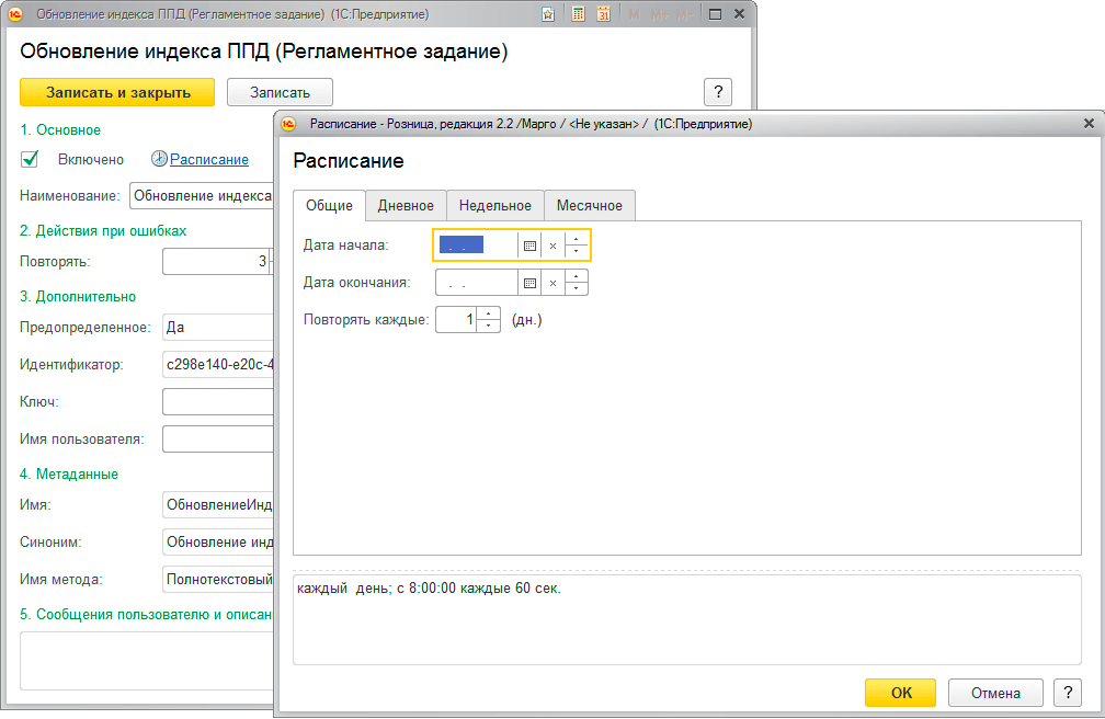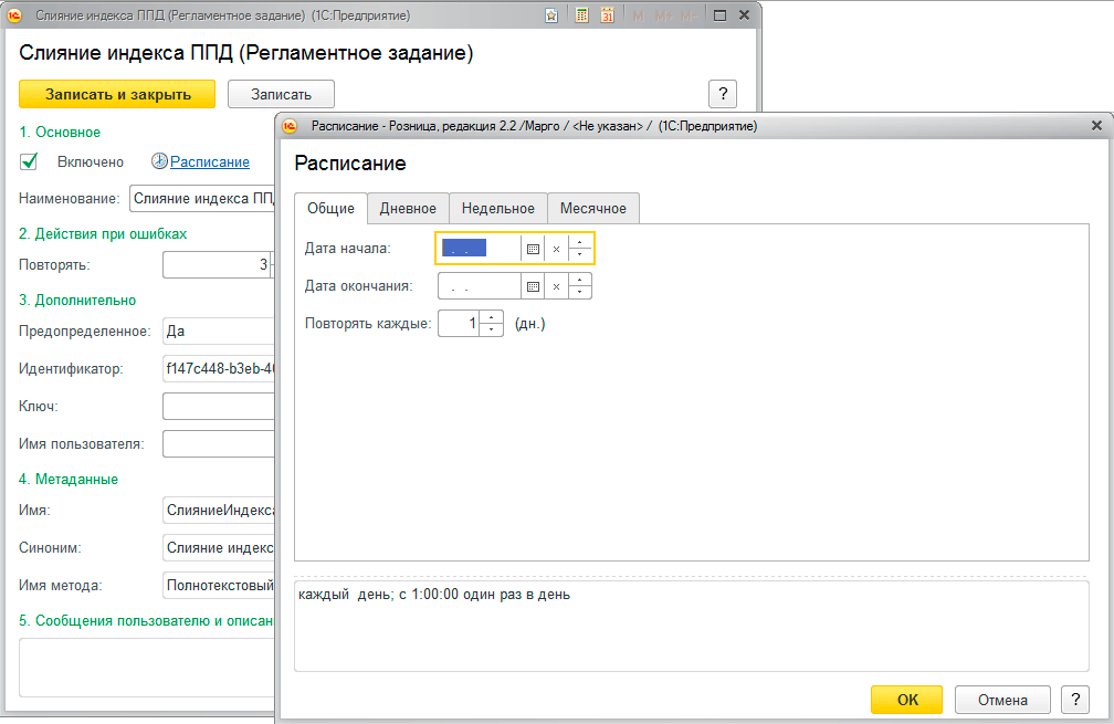 Тоже самое относится и к слиянию индекса ППД, если вы обновляете индекс раз в день, то следует настроить слияние на выполнение раз в неделю, при этом выбрав в качестве начала задания наименее мешающее работе время.