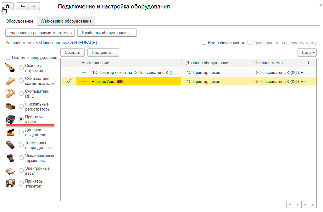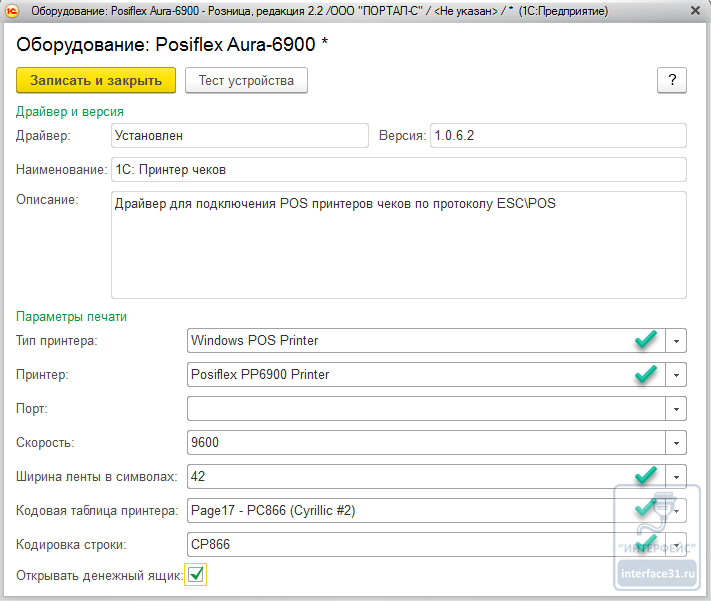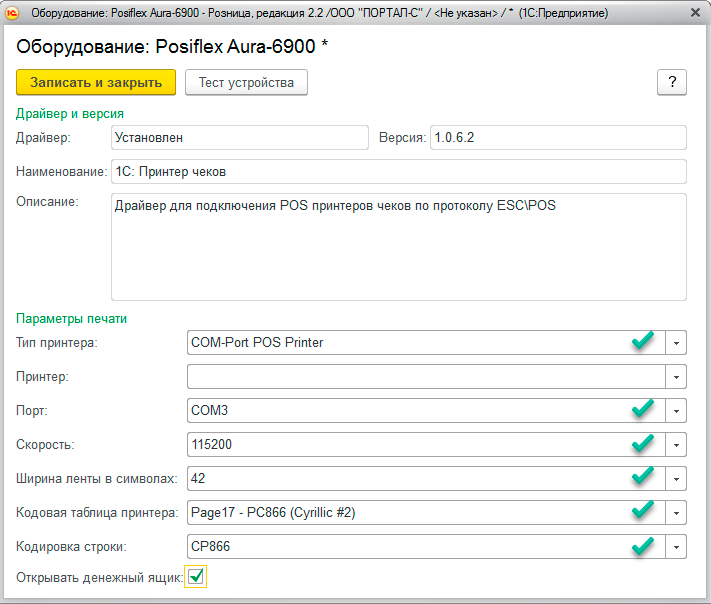Подключаем принтер чеков к 1С:Предприятие на примере Posiflex Aura-6900