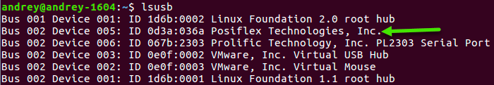 Если вы подключаете устройство с интерфейсом USB, то прежде всего следует убедиться, что оно правильно определилось системой, для этого выполните команду: