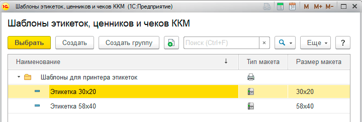 При необходимости вы можете создать разные варианты этикеток для разных случаев. В дальнейшем при печати этикеток вы просто выбираете необходимый формат и указываете нужное количество. Обратите внимание, что шаблоны для принтера этикеток обозначаются специальным значком, для их печати будет автоматически использоваться подключенный к рабочему месту принтер этикеток.