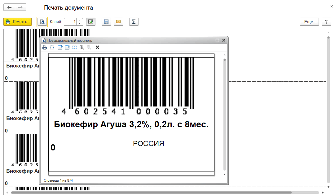 Программа автоматически, не задавая лишних вопросов, пошлет задание на принтер этикеток в соответствии с настройками, которые мы задали в параметрах страницы при создании этикеток. Именно поэтому мы заостряли ваше внимание на обязательности этого шага.