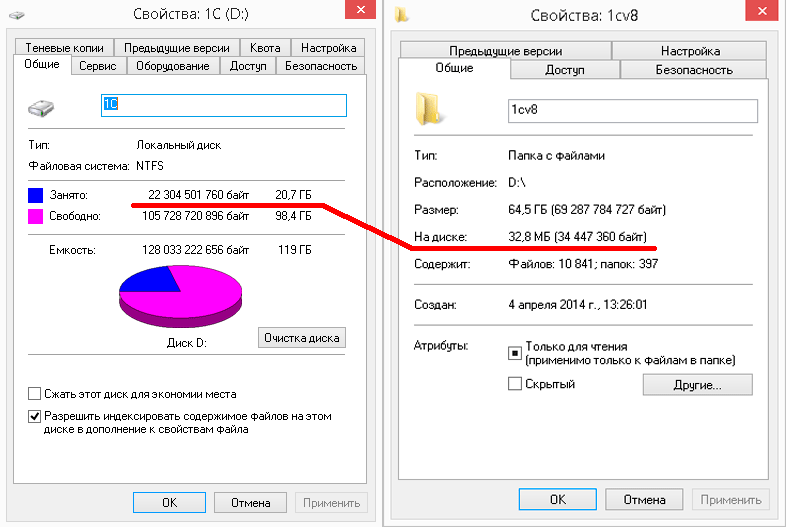 Как видим размер оптимизированных данных 20,7 ГБ, полный размер 64,5 ГБ из них на диске 32,8 МБ. Что это значит? А это означает, что остальной объем данных расположен в хранилище. Так как размером в 38 МБ можно пренебречь, то мы имеем размер хранилища в 20,7 ГБ, поэтому для успешного восстановления данных нам потребуется 85,2 ГБ.