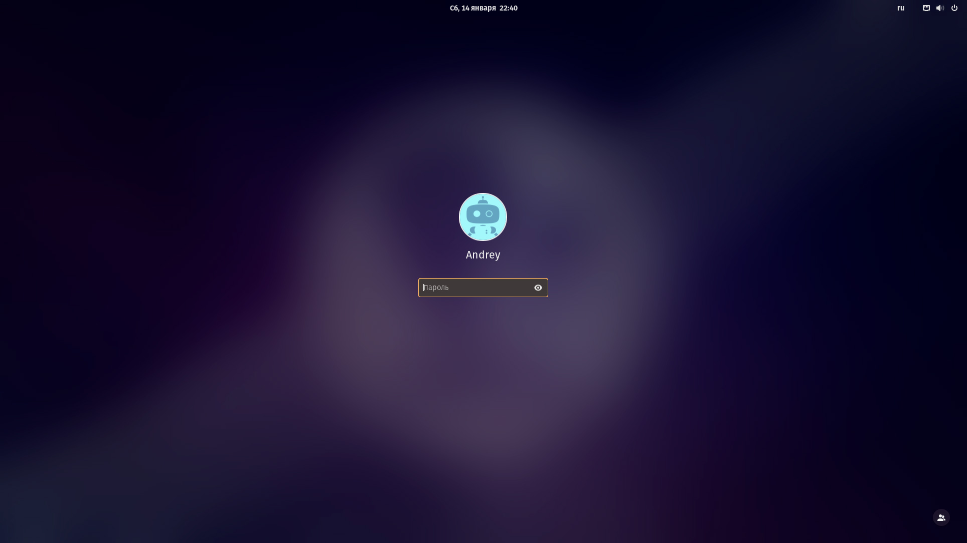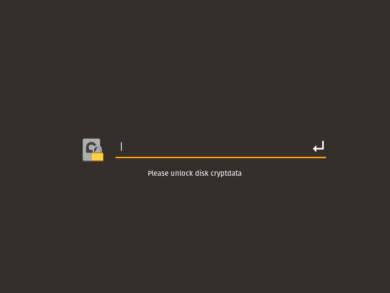 После перезагрузки система первым делом попросит нас ввести пароль, потому что весь диск, кроме раздела /boot, зашифрован. На ввод дается три попытки, после чего устройство придется заново выключить и включить.