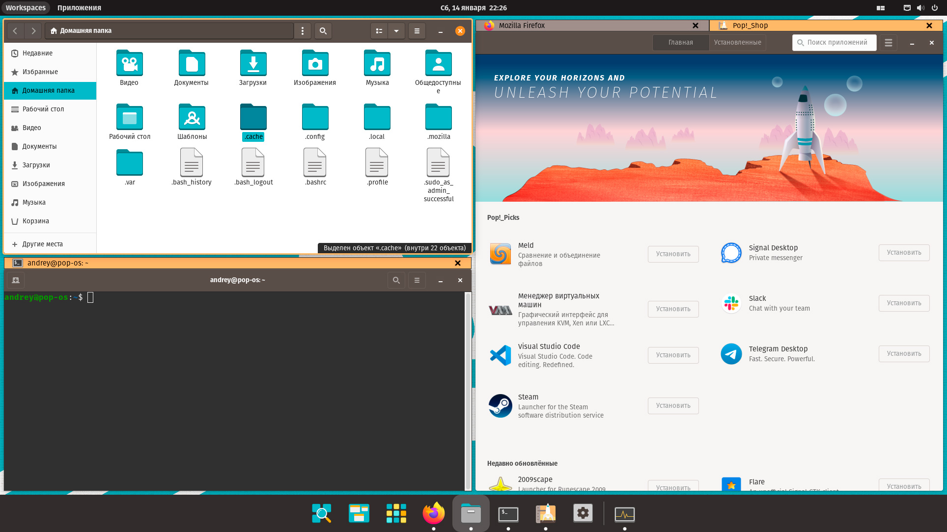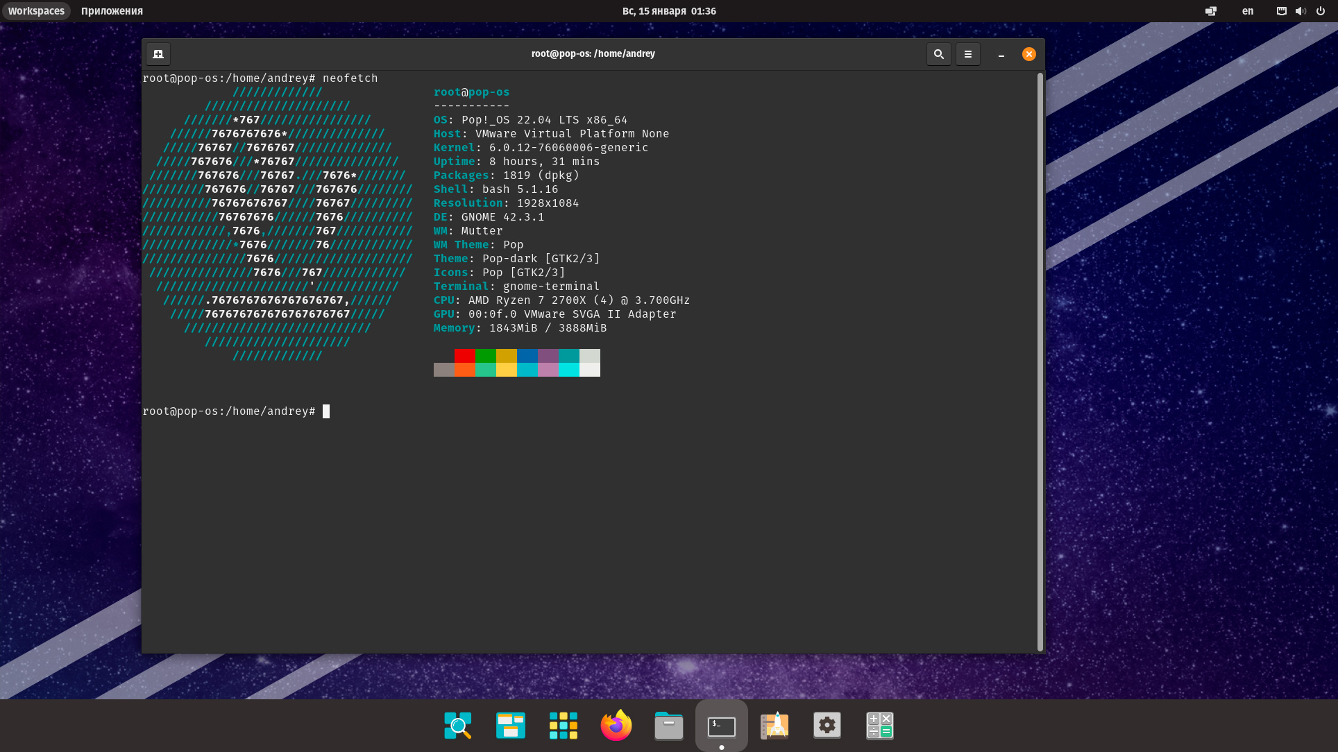 Как мы уже говорили, Pop!_OS основан на Ubuntu 22.04, но имеет в составе новое ядро 6.0 и графическую оболочку GNOME 42, причем оболочка заботливо настроена и серьезно отличается от ванильной.