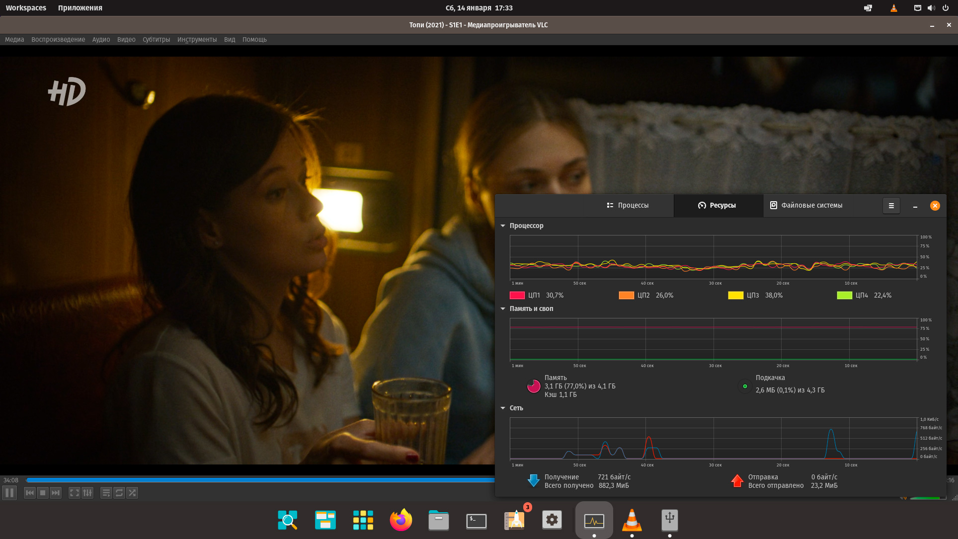 Ну а теперь к потреблению ресурсов. Многим оно не понравится, система имеет достаточно высокие требования, особенно по использованию оперативной памяти, так 4 ГБ - это самый самый минимум, обратите внимание на размер кеша и подкачки. Но будем честны, сегодня машина с 4 ГБ памяти - это скорее бюджетный сегмент, нежели производительная система.