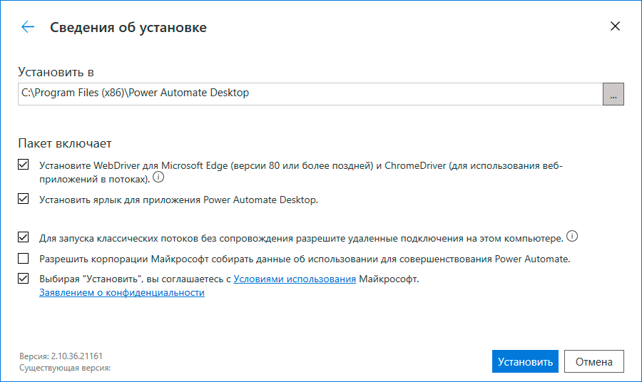 Скачать Power Automate Desktop можно совершенно бесплатно с официальной страницы. Установка проста и не должна вызывать каких-либо затруднений, но отметим и поясним некоторые моменты.