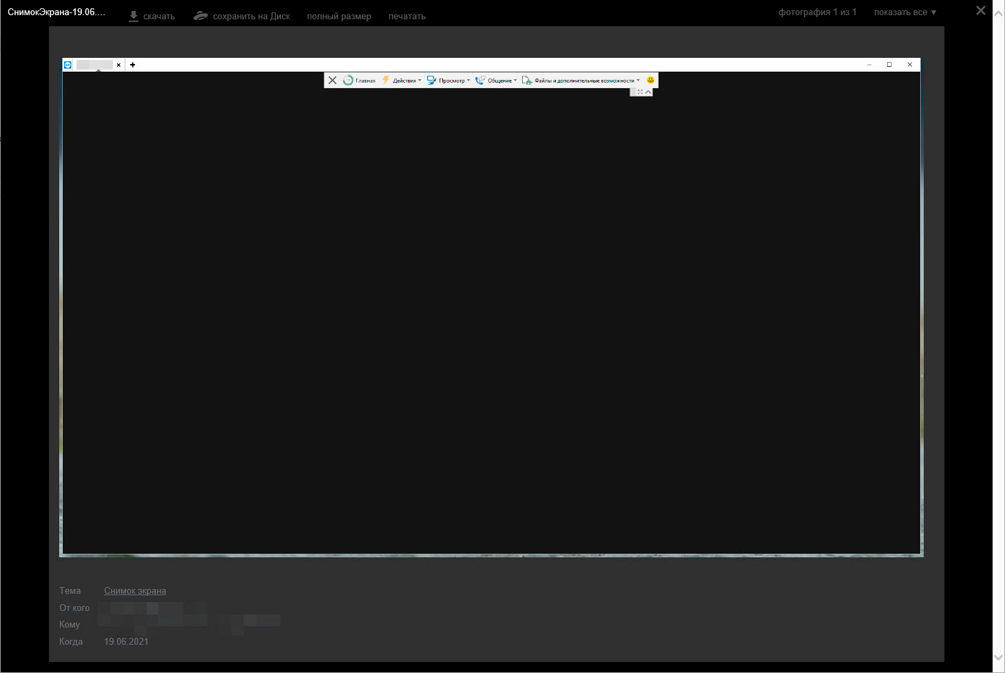 Теперь еще раз запустим отладку потока и убедимся, что все прошло успешно, а в почтовом ящике получателя появилось нужное письмо. Но что это? Вместо скриншота темный экран.